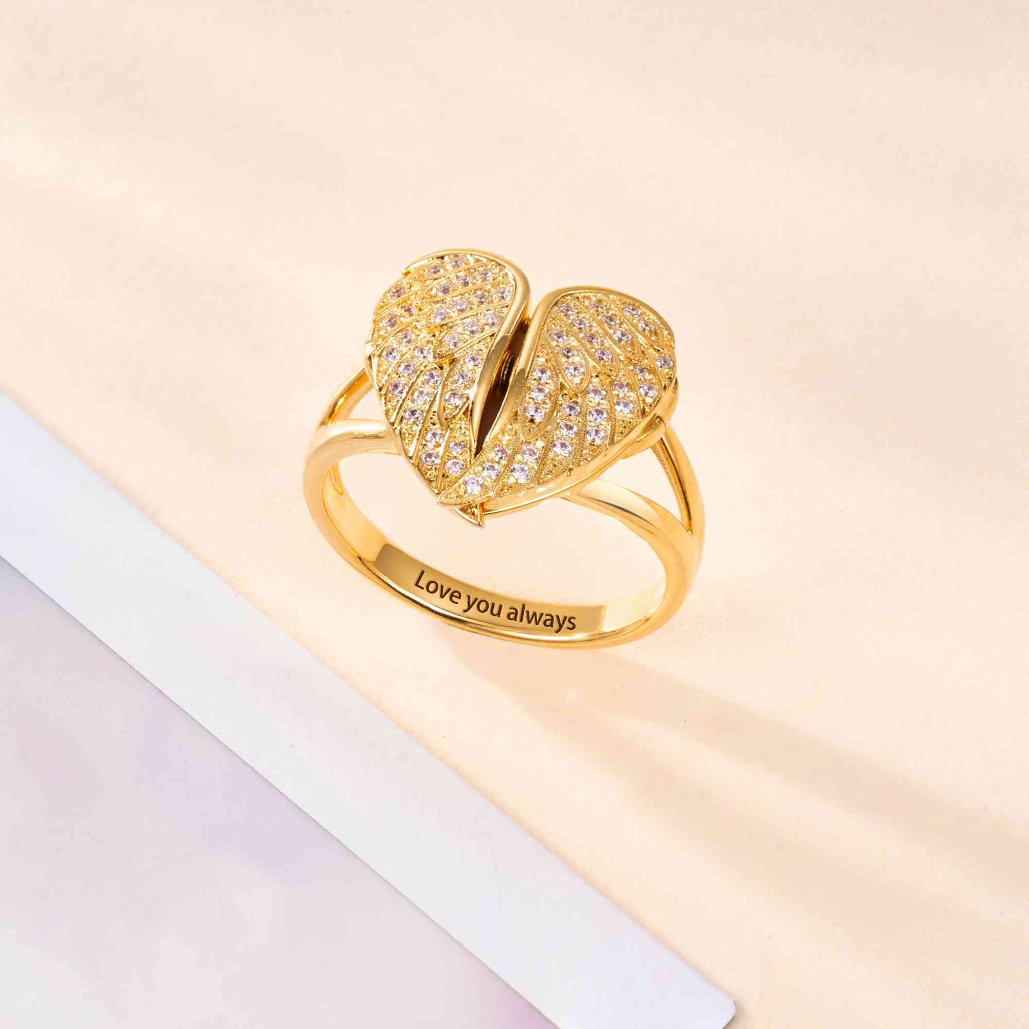 Custom Engraved Heart Shape Angel Wings Photo Locket Ring